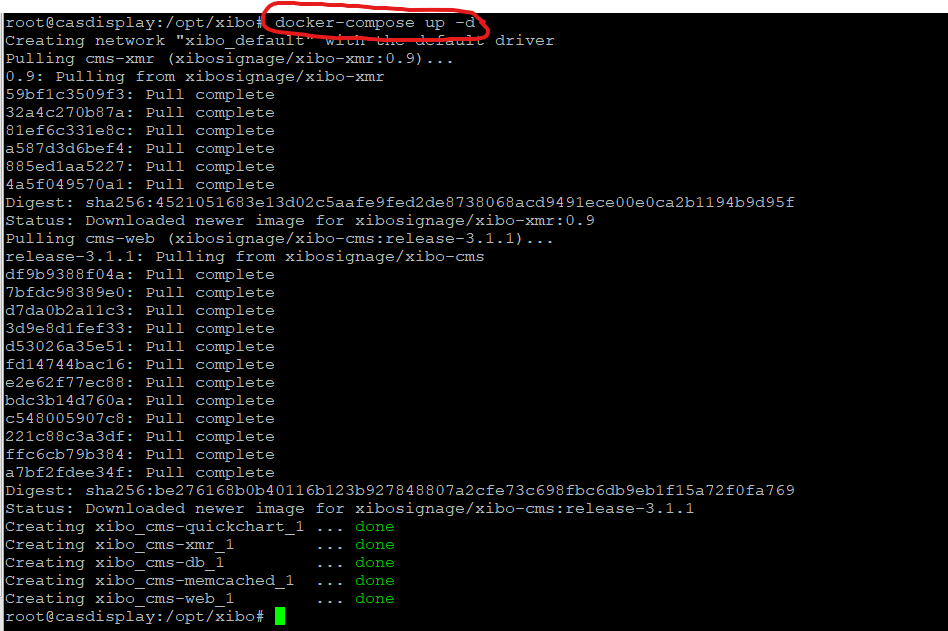 Step 8: We will now take our current Xibo/Docker instance down by using: